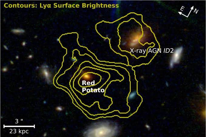 اكتشف فريق دولي من علماء الفلك مجرة جديدة ضخمة وخاملة باستخدام تلسكوب جيمس ويب الفضائي، وأطلق عليها اسم «البطاطس الحمراء».